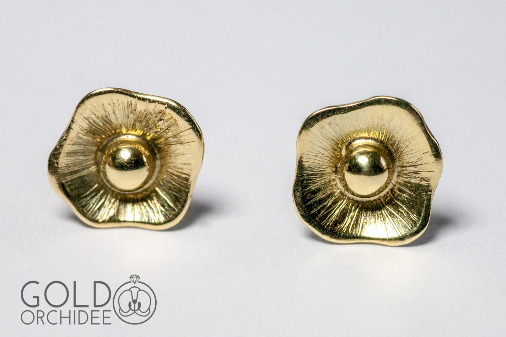 Zarte goldene Blüten mit einer kleinen Goldkugel als Blütenstempel.